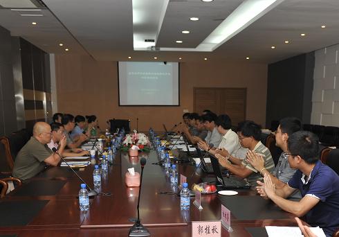 左一科技部科技評(píng)估中心張春鵬,左二中科院高能物理所研究員劉宇,左三中科院聲學(xué)所朱敏,左四科技部科研條件與財(cái)務(wù)司處長(zhǎng)孫增奇,右一中科院聲學(xué)所鄧鍇,右二中科院聲學(xué)所張向軍,右三中科院聲學(xué)所吳健波,右四中科院聲學(xué)所張兆偉。