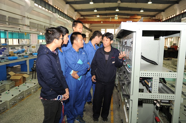在周二做完早操,船舶公司的副總經(jīng)理帶我們來到車間。在這個車間里,我看到了一套完整的駕控臺,甚是震驚,因為在學校一直學習的是理論知識,偶爾在書本上電腦上看見駕控臺的圖片,如今一套完整的駕控臺在我面前,讓一個從小擁有船長夢的孩子多么歡喜。上午,副總耐心的給我們講解駕控臺的每一個零件的功能和操作,我聽得仔仔細細,恨不得將每一個零件銘記于心。在接下來的幾天,部長師傅讓我們認識了很多公司生產(chǎn)的零件。由于我們才接觸最基本的專業(yè)課,師傅講的很多我們都不太懂,師傅都細心地給我們解釋,在校外也能有這么負責的老師進行細心輔導,真的感覺我們實在是幸運了。特別是當知道老師為了上午給我們講課,每天晚上都得加班把當天的工作給完成,驚嘆之余,我更多的是