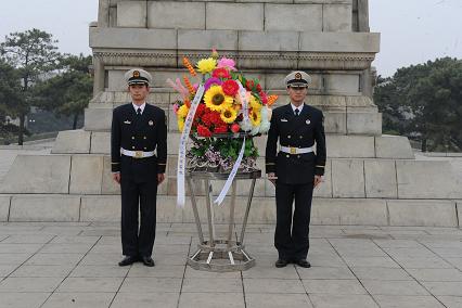 4月1日下午,我們在系教員常路賓帶領(lǐng)下,來到位于錦州的遼沈戰(zhàn)役紀(jì)念館,向英雄紀(jì)念碑敬獻(xiàn)花籃。儀式在雄壯激昂的《獻(xiàn)花曲》中拉開序幕,兩名禮兵邁著鏗鏘有力的禮步將花籃緩緩送到紀(jì)念塔正前方?;ɑ@挽聯(lián)上寫道:“功業(yè)常齊天地永,紅旗自由后人擎;中國人民解放軍海軍工程大學(xué)敬挽?!痹谥鞒秩说慕M織下,我們統(tǒng)一脫帽,向烈士紀(jì)念塔默哀一分鐘。并重溫了入伍宣誓。最后,教員對我們說道:“同志們,歷史證明,強(qiáng)國必先強(qiáng)軍。今天的你們是以共和國未來海軍軍官的身份來到此地,更應(yīng)當(dāng)學(xué)習(xí)先烈們的優(yōu)秀品質(zhì),不斷磨礪自己,努力提升自己,在強(qiáng)軍興軍的征程上奉獻(xiàn)自己的青春熱血!”