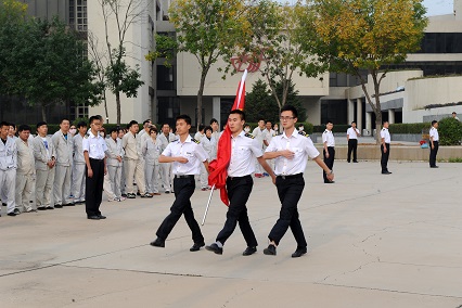 雖然在學校參加了大大小小的升旗儀式也有一年之久了,經驗也算比較豐富的了,但是在航星集團,在這么多員工面前升旗我還是第一次。這不僅僅是一次升旗,這還是向集團的員工們展示我們的機會,我們來到這里,一舉一動都代表著學校的形象,再加上上屆學長的表現非常出色,這讓我感覺到無比的壓力。所以在得到升旗任務的時候我們就開始準備了,經過幾次的篩選,選出了包括我在內的幾個護旗手,他們都是方隊出身,隊列動作過硬,是護旗手的不二人選。再有就是升旗的隊形排列,之前的學長設計得非常好,但是我們想有所創(chuàng)新,在我們幾個負責人的精心設計之下,我們又設計出了一個屬于我們自己的隊形。之后就是無數次的演練,每個環(huán)節(jié),從入場,旗手交接旗,升旗,揚旗,都經過了研究和排練。