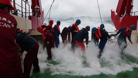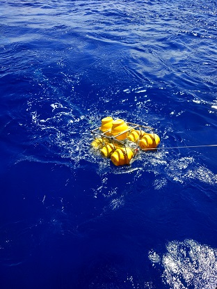 在船上的54天里,我們布放了14套潛標(biāo),回收了11套潛標(biāo),累計(jì)布放803件,回收了294件,其中也包括我們所生產(chǎn)的ADCP。雖然我主要負(fù)責(zé)我們的設(shè)備,但也負(fù)責(zé)了所有的潛標(biāo)布放,而在布放的過(guò)程中,最常見的天氣就是高溫炎熱,因?yàn)榇耙恢痹诔嗟栏浇鳂I(yè),所以船甲板溫度在40度以上,我們常常頂著毒辣的太陽(yáng)在甲板上布放,也讓布放增加了難度,而還有個(gè)自然因素就是以迅雷不及掩耳之勢(shì)襲來(lái)的暴雨,我們經(jīng)常在暴雨中連續(xù)作業(yè),全身都濕透了,也只能頂著暴雨堅(jiān)守戰(zhàn)地。而值得一提的是當(dāng)大風(fēng)以20m/s速度襲來(lái)時(shí),浪花直接拍到了6層駕駛室的玻璃上,仿佛將要把我們吞沒,此時(shí)看著浩瀚無(wú)邊的海洋,一道道波浪不斷涌來(lái),撞擊在船體上,發(fā)出天崩地裂的吼聲,噴濺著雪白的泡沫。是那樣的壯觀。當(dāng)一切都回歸平靜的時(shí)候,又是那樣的云淡風(fēng)輕。
